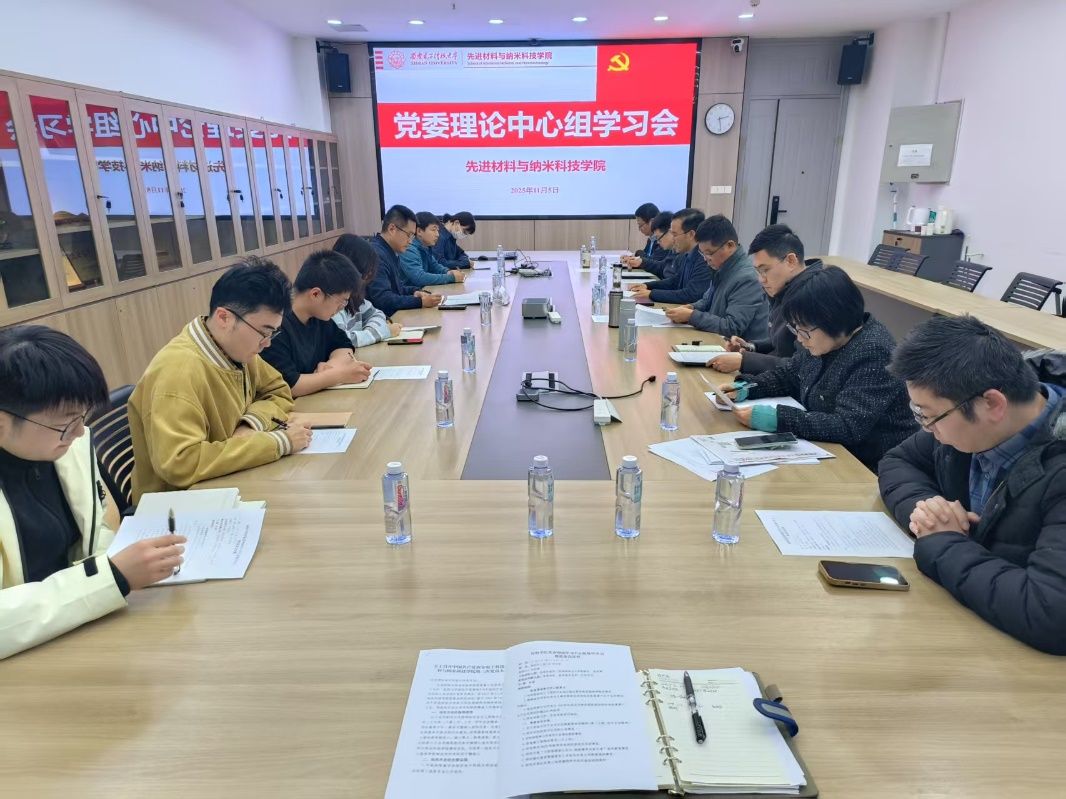 召开党委理论学习中心组(扩大)学习会,专题学习党的二十届四中全会精神以及习近平总书记近期重要讲话精神,学院党委理论学习中心组成员、领导班子成员、支部书记等参加,党委研究生工作部部长张君博巡听指导,学院党委书记宋刚锋主持。