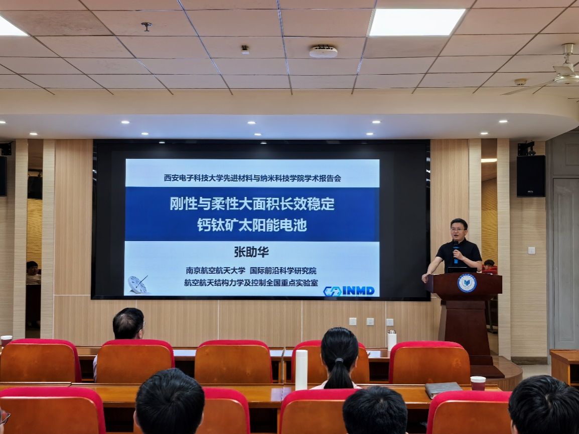 4月17日下午,南京航空航天大学张助华教授应邀访问新葡京官网-新葡京网址 ,以“刚性与柔性长效稳定钙钛矿太阳能电池”为题,为学院师生作专题学术报告。本次报告会由学院执行院长杨丽主持,党委书记宋刚锋及百余名师生共同参与。
